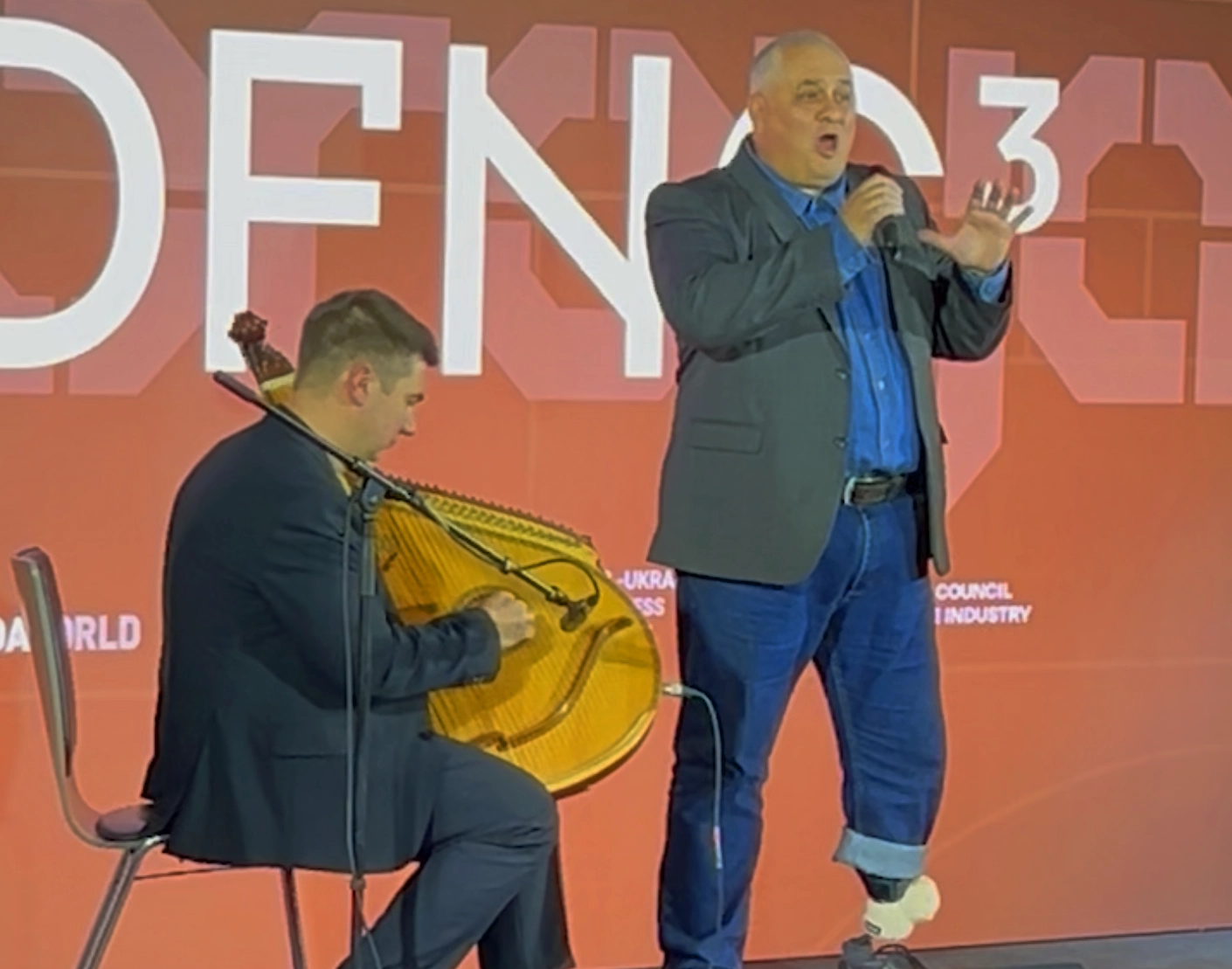 A “cocktail party” type reception followed by a formal introductory session by members of the Strategic Industries department of the Ukrainian Ministry of Defense and a short concert by members of the Ukrainian Armed Forces’ Cultural Forces – the unique military unit made up of active-duty soldiers and veterans who provide music, poetry, and theatre to troops in support of their morale and psychological well-being.