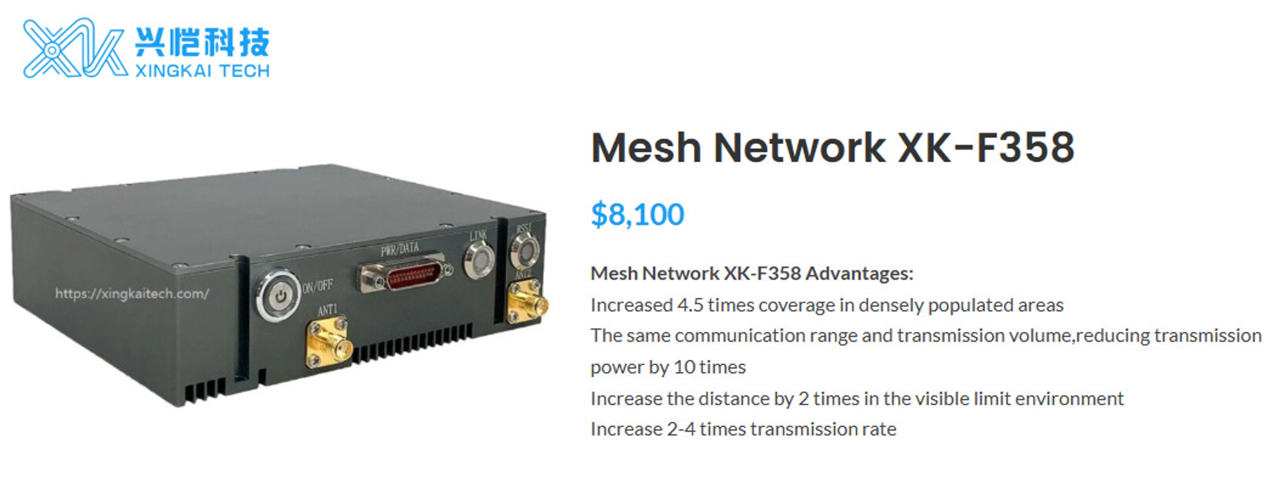Os UAVs carregavam o mesmo modem de malha fabricado em chinês visto em Gerbera-a rede de malha Xingkai Tech Mesh XK-F358, possivelmente em sua versão industrial HX-50.