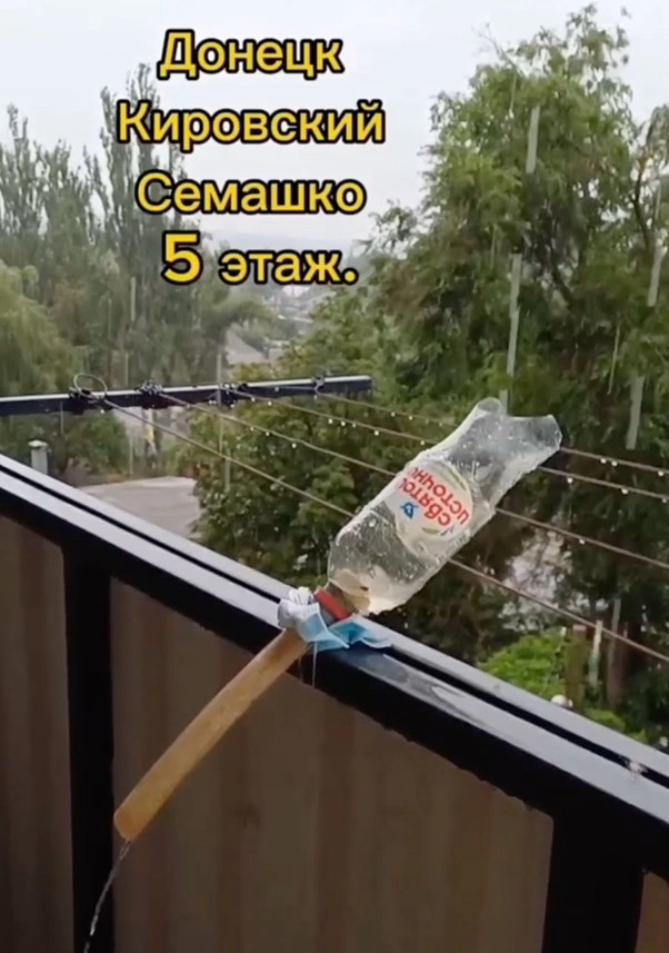 Os habitantes locais carregam água em baldes de porões ou colecionam água da chuva para lavar e lavar banheiros. A água engarrafada é vendida a preços inflacionados-até 5 rublos por litro (50 centavos), o que é o dobro do custo em Mariupol ou Rostov-on-Don.